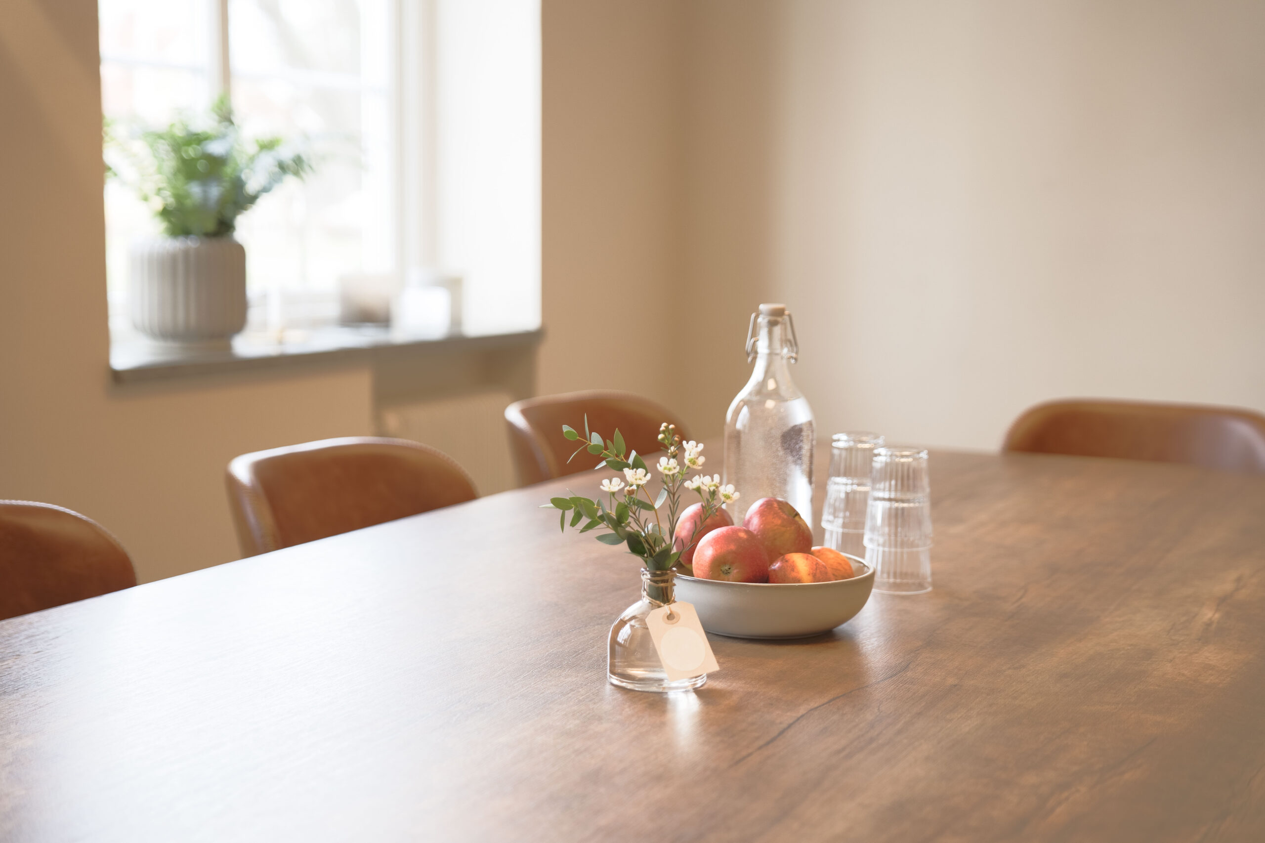 Vatten, frukt och choklad i anslutning till lokalen